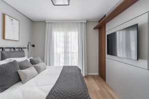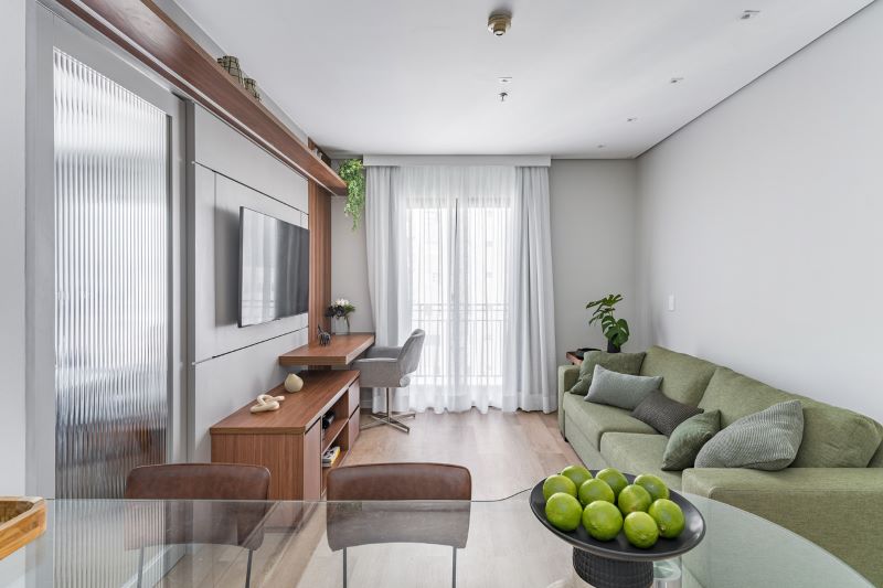 ‘New Life’ é um exemplo notável de estilo moderno e contemporâneo. Este projeto de 4 meses transformou um pequeno espaço em uma suíte completa com cozinha integrada, sala de TV, closet e banheiro. Inovando Arquitetura, sob a liderança de Ingrid Zarza e Fernanda Bradaschia, declarou seu compromisso em criar ambientes funcionais, elegantes e específicos.