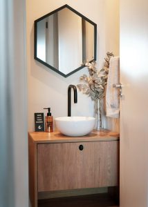 A combinação madeirado + pedra natural é perfeita para um banheiro intimista e de personalidade! Nesse projeto, o escritório Rossi and More apostou na combinação do padrão Louro Freijó, da Sudati, para dar mais leveza ao espaço, que ganha imponência com o mármore preto.