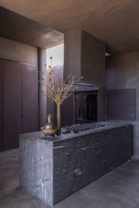 Além dos ambientes-modelo, não à toa Cosentino também foi escolhida para revestir os espaços gastronômicos funcionais do evento, marcando presença nos restaurantes Badebec, com projeto de Gustavo Paschoalim, que usou Dekton Entzo nas bancadas e lareira;