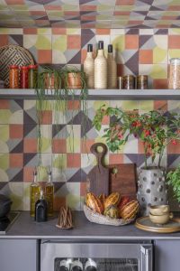 Na Cabana Urbana de Márcio Michaluá, mais um clássico Dekton: Kira revestiu a mesa da cozinha, contrastando com as pastilhas coloridas de sua parede;
