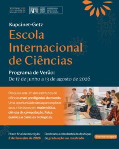 As inscrições online podem ser feitas até 2 de fevereiro de 2026, em https://info.weizmann.ac.il/en/kupcinet-getz-international-summer-program/. Os resultados do processo seletivo serão divulgados até o final de abril, e o programa acontece entre 17 de junho e 13 de agosto de 2026. Com mais de 1.100 ex-alunos formados desde 1971, muitos deles hoje líderes em pesquisa ao redor do mundo, o Programa Internacional Kupcinet Getz representa uma oportunidade única para estudantes que desejam transformar o verão em uma experiência científica internacional de alto impacto.