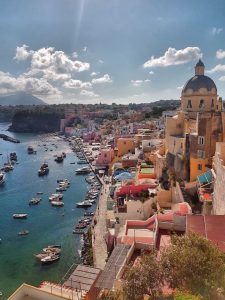 Quem programa uma viagem pelo Golfo de Nápoles, com certeza, precisa incluir a ilha de Capri no roteiro. No entanto, há outras duas ilhas na região que prometem muito mais exclusividade. Procida já tem uma certa fama por ter sido cenário do filme “O Carteiro e o Poeta” e esbanja charme e belezas naturais. Menor ilha do Arquipélago da Campania, uma das grandes atrações é justamente caminhar pelas ruas de pedra e explorar cada canto. A Marina de Corricella, encantador bairro de pescadores, é um dos mais famosos, com seus barquinhos ancorados e o colorido das casas. Em Terra Murata, o prêmio é a vista panorâmica do mar e da costa.