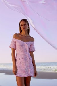 Vestidos, camisas, top croppeds, shorts e calças ganham vida a partir de uma paleta de cor vibrante, com tons como violet, mango, vermelho rouge, vert (verde), bege, rosé, azul cobalto, off-white e preto. A coleção ainda traz duas estampas exclusivas: a “Provence”, um print de lavandas com fundo rosé, e a “Ma Cherie”, que retrata cerejas em um fundo preto.