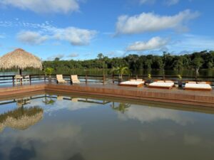 A estrutura inclui piscina natural de água do rio, construída de forma flutuante e com proteção subaquática restaurante que celebra os sabores da culinária regional e internacional, redário para momentos de descanso e uma impressionante torre de observação de 31 metros de altura. Guias especializados e o uso de energia solar reforçam o compromisso do lodge com um turismo sustentável, que respeita e valoriza a riqueza da Amazônia.