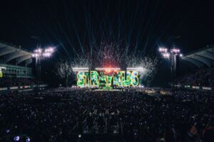 A Stray Kids World Tour < dominATE >, sua maior turnê até hoje, passou por 35 cidades com 56 shows, incluindo 175 mil fãs nos três shows realizados no Brasil. Nos últimos anos, foram a atração principal de alguns dos maiores festivais internacionais consolidando seu status de headliner global. Suas músicas também cruzaram fronteiras culturais, com “Come Play” integrando a trilha da segunda temporada da série Arcane (Netflix) e “SLASH” presente na trilha sonora do filme Deadpool & Wolverine. O disco HOP [2024] se tornou o álbum de K-pop com mais certificações de Ouro da história da RIAA, um marco inédito para o gênero.