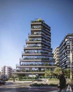 Em construção em Blumenau (SC), o espaço foi concebido de forma paramétrica, técnica arquitetônica que usa recursos computacionais para projetar geometrias complexas. Neste projeto, ela proporciona vistas únicas em um prédio que se comprime à medida que avança verticalmente. Fachadas inteiras de vidro que valorizam a luz natural e ligam os apartamentos aos terraços – característica marcante da proposta -, também transportam o morador a uma experiência de morar em casa e contato direto com a natureza.