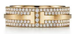 Kendall Jenner uma gargantilha de ouro 18K personalizada com o icônico “T” , Kendall completou a gargantilha com uma seleção de anéis da coleção Tiffany T.