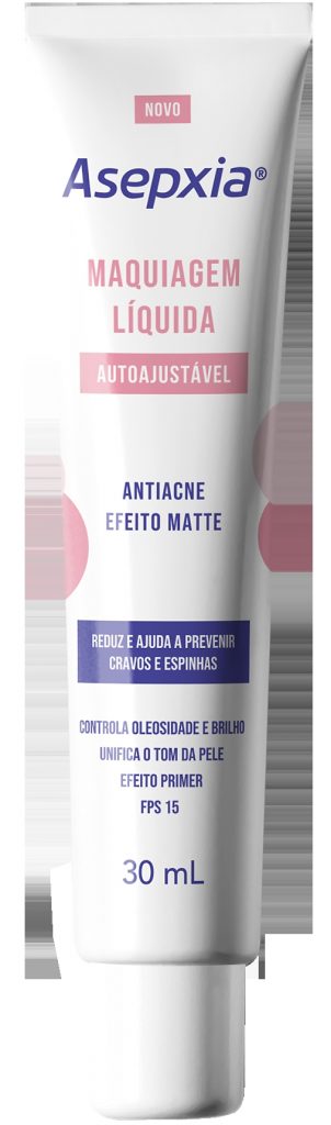 Uma novidade incrível chega ao mercado de beleza: a Maquiagem Líquida Autoajustável de Asepxia. Com tecnologia exclusiva combinada a ingredientes de origem natural, oo cosmético tem consistência de base e fórmula única que se adapta a vários tons de pele enquanto trata.