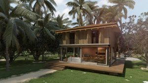 O projeto dos bangalôs possui duas suítes e dois tipos de planta, uma voltada para a área social, com uma sala mais ampla, e outra que privilegia a área íntima, com a possibilidade de criar uma suíte maior.