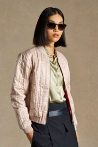 A jaqueta reversível Knightsbridge Promenade combina um tom marrom clássico com um lado acolchoado em rosa delicado, enquanto a Soho Chic traz um lado acolchoado contrastante e, no reverso, uma estampa gráfica marcante em tons de framboesa e blush.