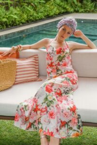 A cartela de cores aposta em tons delicados como lavanda, off-white, rosé, azul claro e nuances naturais de linho, que reforçam o frescor da temporada e dialogam com o romantismo sutil da coleção. Estampas florais exclusivas surgem sobre fundos suaves, criando composições leves e elegantes.