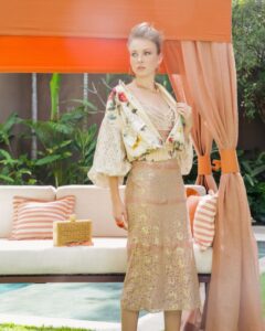 A funcionalidade também se destaca em itens dupla face, como a saia longa Mullet Dália, que pode ser usada tanto do lado do linho como no do forro de renda. “Isso ajuda demais numa mala prática, chique e atemporal”, reforça Lethicia.