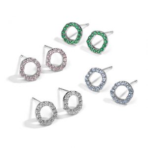 Brincos Life Snow Redondo Prata — disponíveis nas cores: incolor, verde, rosa e azul | R$350,00
