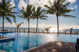 O Vivant Eco Beach, em Maraú (BA), celebra o fim do ano com sabor tropical e pé na areia. Há cardápios especiais para Natal e Réveillon, festa da virada com banda e DJ, open bar e open food opcionais, além de uma sequência de atividades que incluem sunset na piscina, brunch de Ano Novo e noites de gastronomia regional — tudo integrado à natureza da Península de Maraú. O resort oferece acesso direto à praia, piscina com vista para o mar, restaurante de gastronomia regional e amplas áreas verdes, perfeito para quem busca uma virada no litoral.
