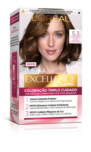Imédia Excellence, de L’Oréal Paris, conta com a nova rotina inspirada nos salões. Ela cuida da cor com o creme colorante protetor, do couro cabeludo com o novo shampoo cuidado profissional e do cabelo com o cuidado milagroso da cor, garantindo assim 100% de cobertura dos fios brancos com uma cor intensa e de longa duração. Aplicar o creme colorante protetor é o primeiro passo para garantir cor intensa.
