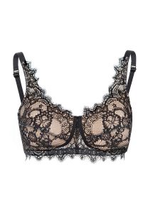 O outro modelo é mais romântico com renda francesa clássica e atemporal com “franjas” delicadas no bico, além de duas camadas de tule e uma calcinha com cintura ligeiramente alta de renda francesa, com elasticidade moderada na frente e uma microfibra sedosa e macia na parte de trás.