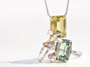 As joias desta coleção trazem diamantes e pedras coloridas, incluindo ametista, topázio azul, quartzo amarelo e verde. A mistura de metais varia de ouro (amarelo, rosa e branco) a prata de lei em silhuetas diferentes, como pinos de alfinete, broches, pingentes e aneis, para trazer uma sensibilidade de joias finas.