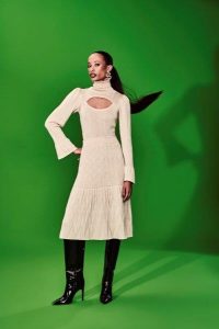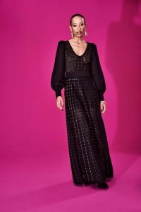 Os tricots clássicos da Doce de Coco agora aparecem irreverentes em pontos mais grossos e desestruturados, numa modelagem moderna, trazendo franjas e fios metalizados de lurex para um ar mais glam, perfeito para um encontro romântico.