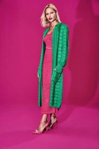 Iluminando os casais nesse inverno, parte das peças exploram tons de rosa-choque e verde, tendências da estação. Já para quem gosta do atemporal, o preto e branco chega com a elegância e discrição que nunca deixa de encantar. A coleção apresenta modelos de blusas maxpull, casacos, saias e vestidos.