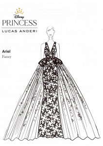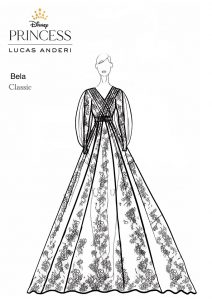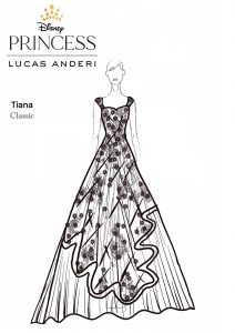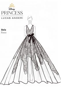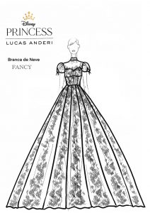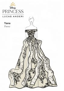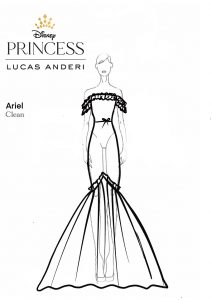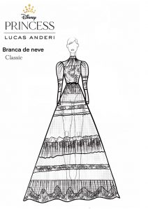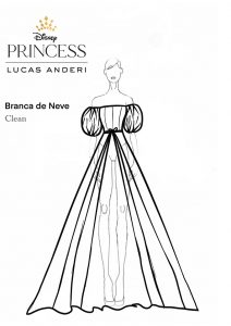 As princesas Tiana, Branca de Neve, Bela, Ariel, Cinderela e Jasmine foram as inspirações para os dezoito vestidos que compõe a coleção e que serão usados por celebridades brasileiras durante a campanha. Confira os croquis divulgados com exclusividade pelo estilista: