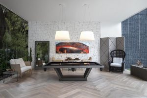 O resultado é um ambiente despojado com valorização do rústico e natural. “Deixamos o espaço descontraído, com mesa de bilhar e móveis com fibras naturais, que não deixam de ser elegantes e acolhedores”, completa a arquiteta. No mobiliário destaque para a linha light gray, ratier de linho natural, veludo nos sofás, alguns toques de couro no baú e puffs e fibras naturais de algumas poltronas e cadeiras. Para compor o espaço, Flavia selecionou o sofá Jaen, poltrona Maros, mesa de jantar que se torna bilhar La La Land, poltrona Palawan, mesa de chá Kiluan, puff Talu, Cadeira Cage II e biombo Bronte.
