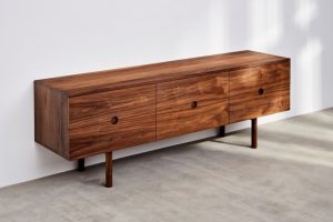 A coleção conta com detalhes ergonômicos que eliminam pontos de pressão desconfortáveis e trazem ainda mais suavidade ao design das peças. Todo o conjunto tem um acabamento natural oleado que destaca a materialidade da nogueira americana maciça.
