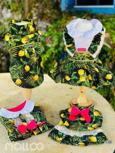 “Quis trazer para essa coleção coisas simples como o cheirinho do mar, o clima descontraído de um passeio na praia no fim da tarde, o perfume do limão siciliano e outros elementos que representam o prazer da liberdade, de sorrir e amar, principalmente nesse momento em que estamos redescobrindo os pequenos prazeres da vida”, explica Manaira Prado, estilista e proprietária da Malloo, primeira grife de moda pet.