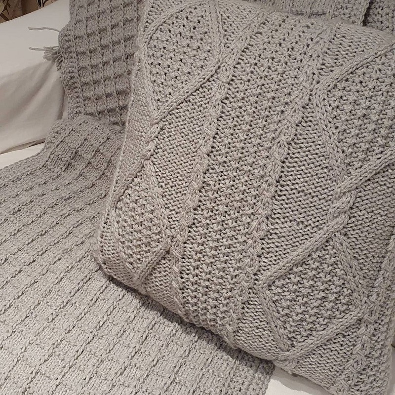Na Cosy Home, loja especializada em papel de parede, tecidos e persianas, as mantas e almofadas são desenvolvidas em tricot, à mão. De acordo com a sócia da loja, Nitsa Vianna, mantas artesanais trazem memória afetiva para dentro de casa. “Além de valorizar o trabalho manual, gostamos de trazer o artesanal e ressignificar essa técnica tão linda para o décor de casa”, comenta.