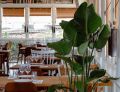 O ambiente interno reforça a proposta de integração com o território. O projeto estabelece um contraste entre referências de refúgio de montanha e o cenário marítimo de Comporta, destino conhecido por suas praias extensas, arrozais e preservação ambiental. O mobiliário combina madeira clara, fibras naturais e tons neutros, com mesas coletivas e áreas de convivência que incentivam o compartilhamento. Plantas de grande porte, iluminação difusa e materiais orgânicos completam o espaço, criando um ambiente informal e conectado à paisagem externa.