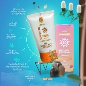 Desenvolvido pela NESH Cosméticos, Sunnature Nesh tem óleos essenciais e vegetais e extratos naturais e orgânicos em sua composição, é totalmente livre de toxinas que prejudicam a saúde e o meio ambiente, além de estimular o colágeno para manter a pele jovem e saudável