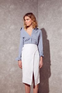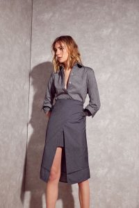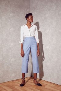 A marca apostou em modelagens retas, com peças de alfaiataria, produzidas em tecidos sustentáveis, escolhendo trabalhar com matéria prima de apenas duas empresas, G.Vallone – com o tecido Splendor que tem a composição de 100% modal – e Eco simples, que é referência na fabricação de tecidos sustentáveis.