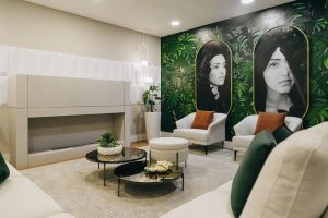 O living assinado por Camily Cavalcanti Camilo traz as formas orgânicas inspiradas na natureza e na leveza feminina. O verde junto aos tons neutros proporciona uma atmosfera de conexão com o lar. A lareira oferece uma sensação de aconchego e personalidade ao ambiente. O grande destaque vai para o mobiliário assinado disponível na Masotti Curitiba.
