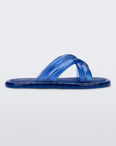 Para complementar o drop, Melissa Cali + Larroudé traz a praticidade de um slide com tiras de Melflex na parte superior que adicionam volume e estilo ao sapato. Projetado entre a cofundadora da Larroudé, Marina Larroudé, e o time Melissa, esse modelo apresenta o melhor das duas marcas.O slide traz uma paleta de cores lúdica, perfeita para usar do inverno ao verão: lilás, verde, azul, vermelho e preto.