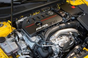 A alta potência e torque, combinados com a transmissão integral AMG 4MATIC, feita para alto desempenho, levam o modelo a um comportamento dinâmico excepcional: o A 35 AMG acelera de 0 a 100 km/h em 4,7 segundos e sua velocidade máxima é 250 km/h (limitada eletronicamente). Além da potência, o novo sistema de propulsão apresenta reação espontânea aos comandos do pedal do acelerador, alto poder de tração (torque máximo de 400 Nm a partir de 3.000 rpm), uma resposta extremamente rápida e um som emocionante do motor. O cárter feito de alumínio fundido por injeção de alta resistência, diminui o peso do veículo onde mais importa para a dinâmica de condução.
