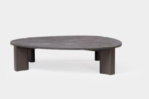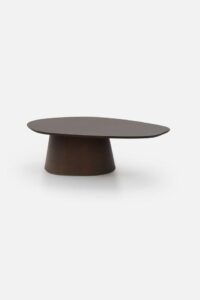 Mesa de Centro Arena: De formas sólidas e proporções expressivas, a mesa de centro Arena atua como ponto focal da sala. Sua base arredondada e tampo orgânico confere estabilidade visual ao conjunto, unindo acolhimento e elegância.