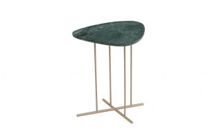 Originalmente produzidas para a coleção Haikai 2020 da Gold Line Mobiliário, as mesas laterais Hashi são algumas das peças mais queridas criadas por Ále Alvarenga. Para sua coleção de 2021 com a fabricante, Ále apresentou uma nova versão da peça, com o tampo usinado no granito Verde Guatemala. Os tampos da linha Hashi foram criados através de desenhos gestuais e processados por um algoritmo especial desenvolvido pelo designer a partir da sequência Fibonacci. Após a definição da forma final, a pedra bruta é processada, resultando numa escultura delicada e única.