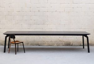 A ousadia estética e leveza visual da mesa Oppenheimer escondem a resistência da estrutura para receber tampos de diferentes materiais e tamanhos.