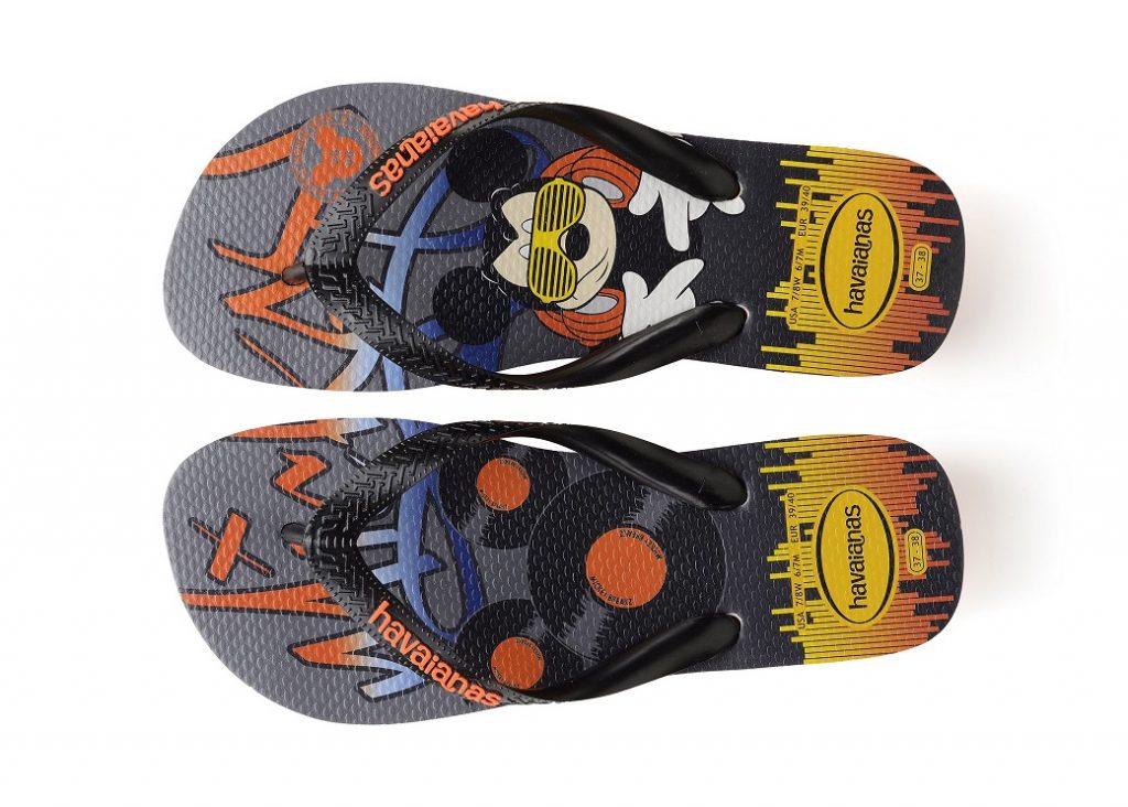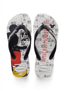 Mickey Mouse comemora os 90 anos de a sua primeira aparição nos cinemas com o curta-metragem Steamboat Willie (1928) e a Havaianas – que também é super fã do camundongo mais famoso do mundo – preparou uma edição especial com muita cor e originalidade. A série comemorativa inclui 10 estampas com ilustrações que mostram a trajetória encantadora de Mickey – de 1928 até os dias atuais. Cada design representa uma década, que soma quase um século de eventos marcantes, onde o personagem navegou em águas distantes, foi aprendiz de um mago, pop star, atleta e até explorador lunar.