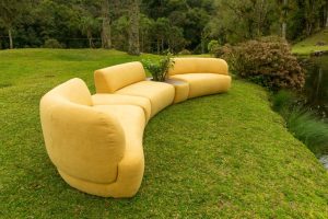 Representando o fenômeno das partículas solares, o sofá Boreal traz no seu formato orgânico e curvilíneo os movimentos que se repetem na natureza.