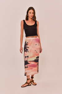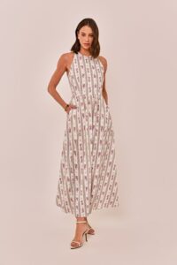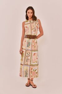 As estampas, ora orgânicas e artesanais, ora botânicas e pictóricas, evocam o pôr do sol tropical, a flora exuberante e a fauna em movimento, enquanto padronagens étnicas, florais e listras ganham leituras contemporâneas que remetem ao charme rústico e romântico do handmade.