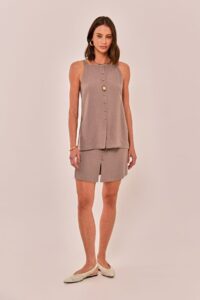Entre o pink vibrante, verdes refrescantes e clássicos tons terrosos, a cartela de cores revela a harmonia entre o natural e o ousado. Off white, preto, cru, lemon, bege chai e nude surgem ao lado de coconut, chocolate, cana e coral, criando composições que passeiam entre o casual e o sofisticado.