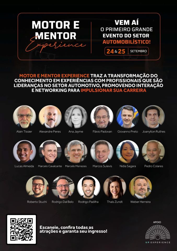 Se você atua no setor automotivo, na cadeia de suprimentos ou é um entusiasta de desenvolvimento profissional, esse evento é pra você! Motor e Mentor Experience, um evento híbrido que tem o objetivo de desenvolver colaboradores para a indústria, inspirando-os através do conhecimento das lideranças que já executaram projetos incríveis ao longo de suas jornadas. A nova data já está agendada para os dias 24 e 25 de setembro, no Teatro UP Experience da Universidade Positivo. Pessoas que se interessem por esse meio e queiram se inspirar para desenvolver uma carreira em áreas que estejam no escopo da indústria automotiva podem participar do evento.