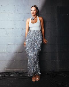 Peças metalizadas e com brilho oferecem um efeito espelhado que se transforma com o movimento. Vestidos ou blazers amplos na tendência são ideais para festas e eventos noturnos. Para um toque ainda mais expressivo, opte por itens com franjas, recortes, caimentos fluídos ou modelagens oversized, que garantem um visual jovem e glam.