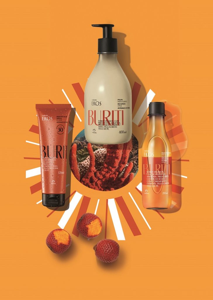 Proteção solar com filtro 100% mineral, a novidade protege a pele e combate os danos causados pelo sol, desacelerando o fotoenvelhecimento e evitando a descamação. O óleo bruto de buriti é rico em betacaroteno, capaz de estimular a proteção natural da pele. Já entre os relançamentos, o óleo trifásico pode ser usado durante o banho e forma um filme protetor na pele que a deixa macia, iluminada e perfumada. Pós exposição solar, a Polpa Desodorante para o corpo proporciona um cuidado intenso que hidrata e recupera a pele dos efeitos nocivos do sol. E, para proporcionar o brilho de um dia de verão, a Colônia Frescor Desodorante finaliza o ritual de cuidado com as notas refrescantes do buriti.