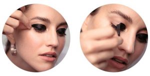 1. Umedeça a pálpebra com um pouco de água e, após alguns segundos, puxe a pontinha do delineado com os dedos.