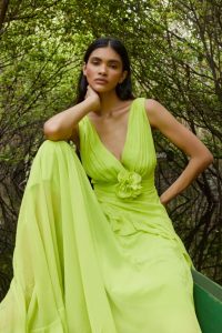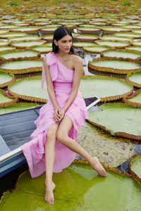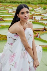 As estampas exclusivas da coleção ficam por conta dos florais, como o print Equilíbrio, no clássico preto e branco; Peônia, com toques de rosa; Intuitiva, com modelos chiffon, que garantem leveza e romance; e, por fim, a Jacquard Floral, que agrega luz ao visual com suas flores douradas de foil em tecido tipo brocado. Os elementos da coleção ficam por conta de flores 3D, laços e assimetria.