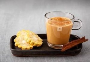 Coloque o suco de milho, o Rum para versão alcóolica e o café na coqueteleira;