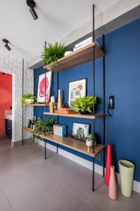As arquitetas Debora Terra e Jessica Pereira do Studio 92 arquitetura também projetam seus espaços com estes recursos. As estantes, muitas vezes com o desenho do próprio escritório em estilo jovial e atemporal criam soluções para organizar objetos, livros, muitas plantas e até mesmo para armazenar vinhos para quem tem pouco espaço.