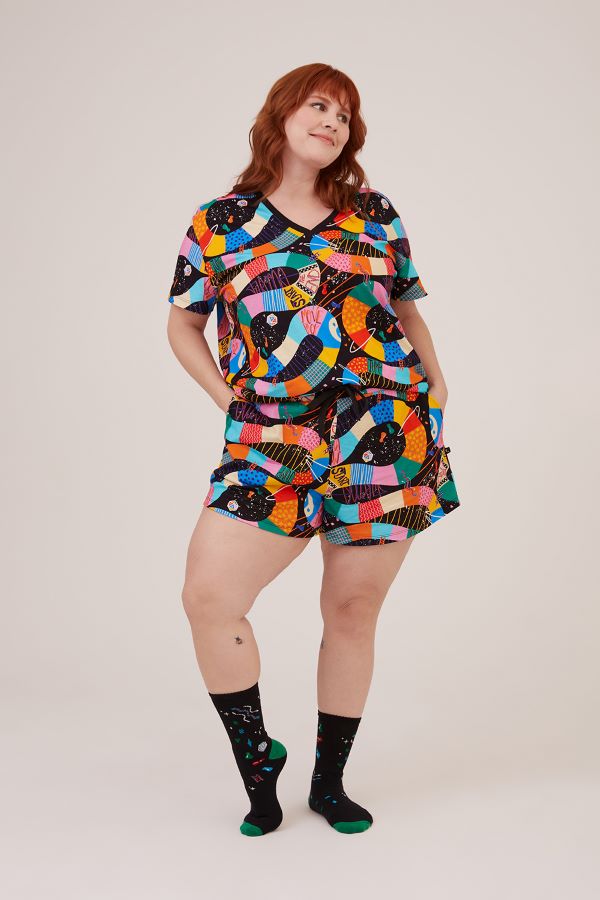 No decote, o tecido em ribana preta também destaca o colo e contrasta com a estampa colorida e divertida. (R$ 109,90)