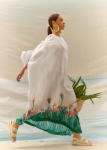 O potiguar se inspira na fauna, na flora e na cultura do Rio Grande do Norte para criar peças pintadas à mão com estampas marcantes. Pense em camisas, vestidos, caftãs, calças e tops em tecidos como algodão, chiffon e jeans, que mesclam estampas e referências regionais, como cajus, cardumes de peixe e iemanjá.